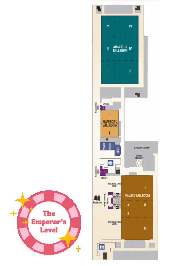 The post-ceremony reception and ensuring party will be held in the Emperor’s Ballroom, located on the Emperor’s Level of the Caesar’s Palace Conference & Event Center, just an escalator ride away from the Venus Gardens!